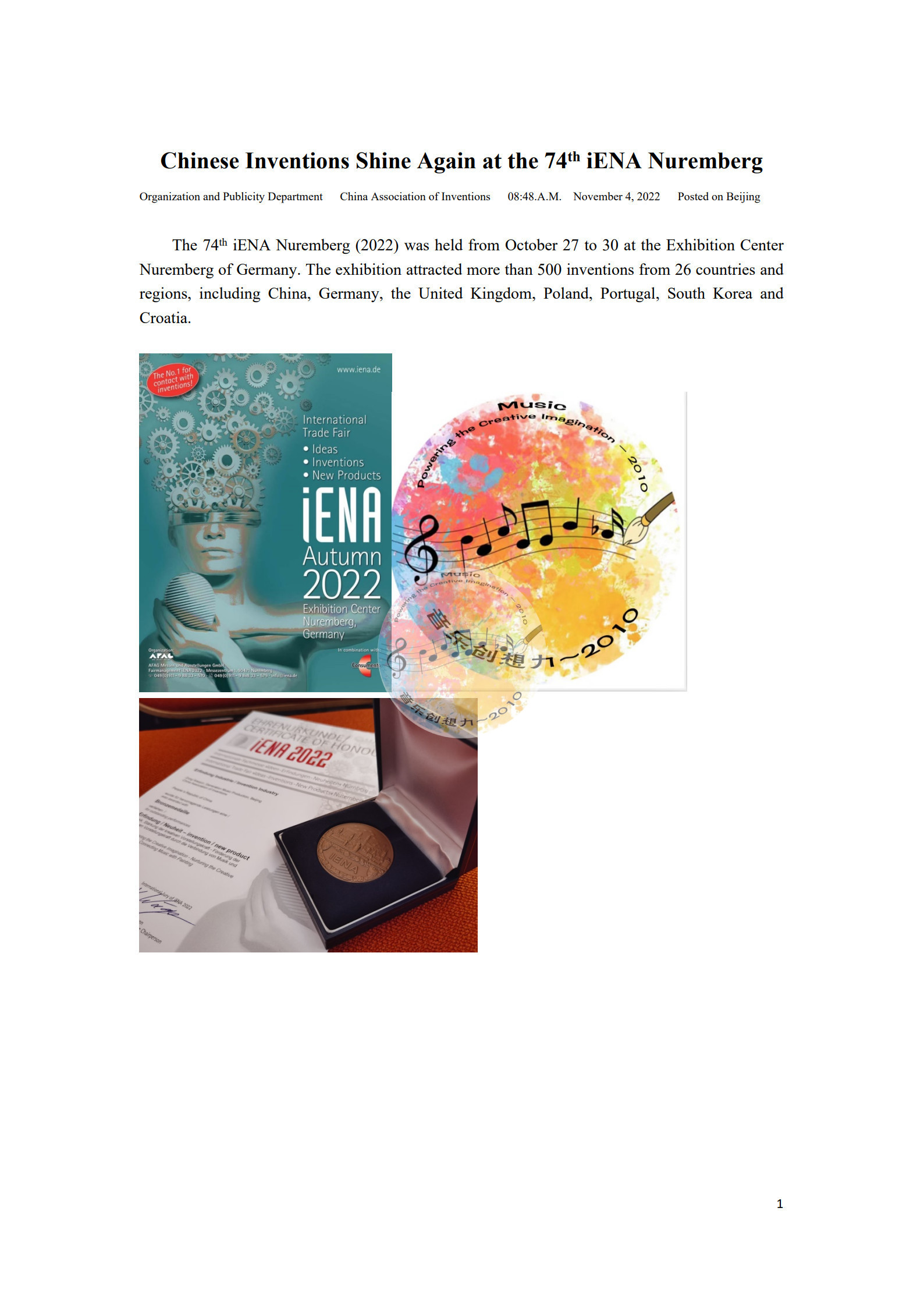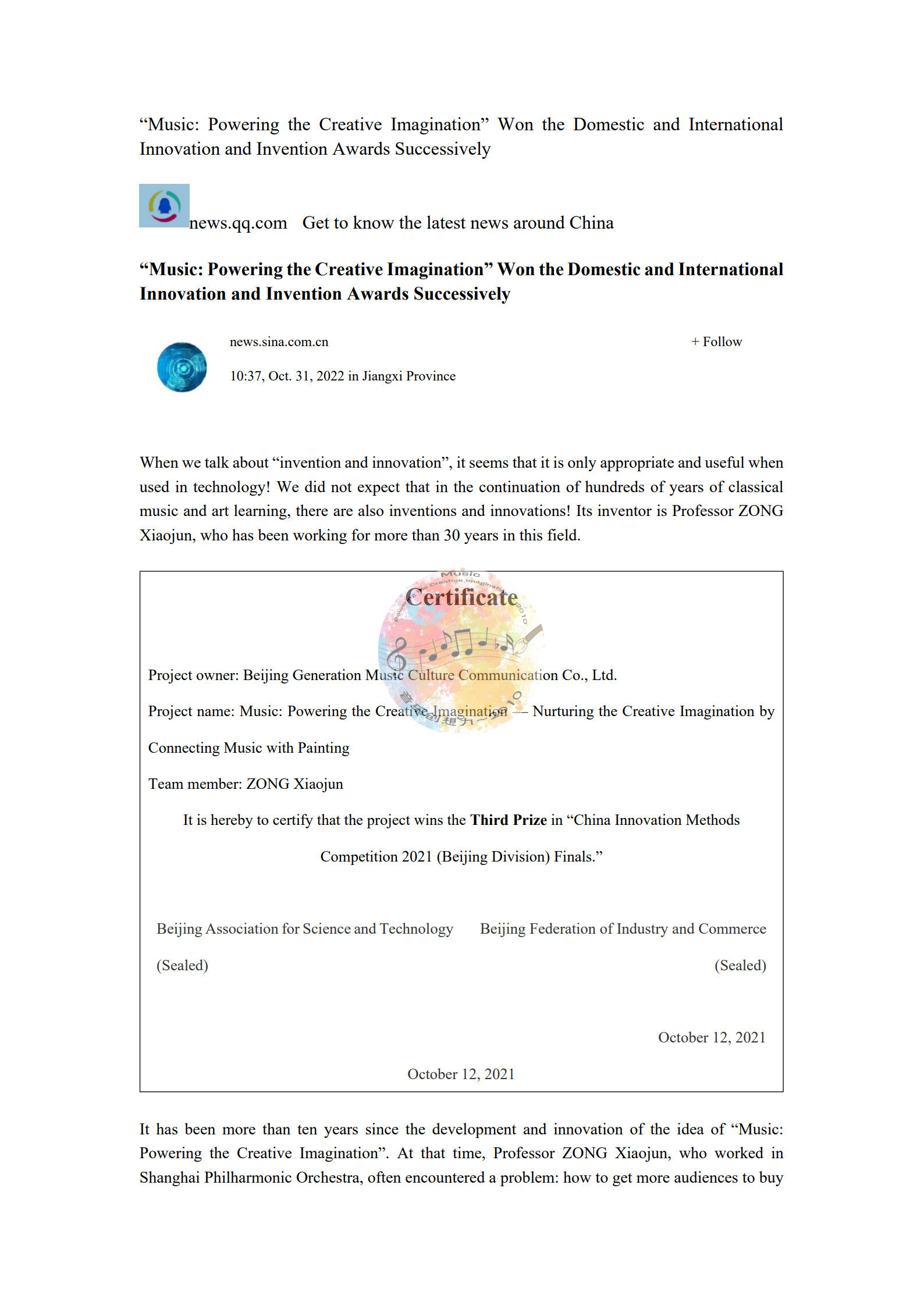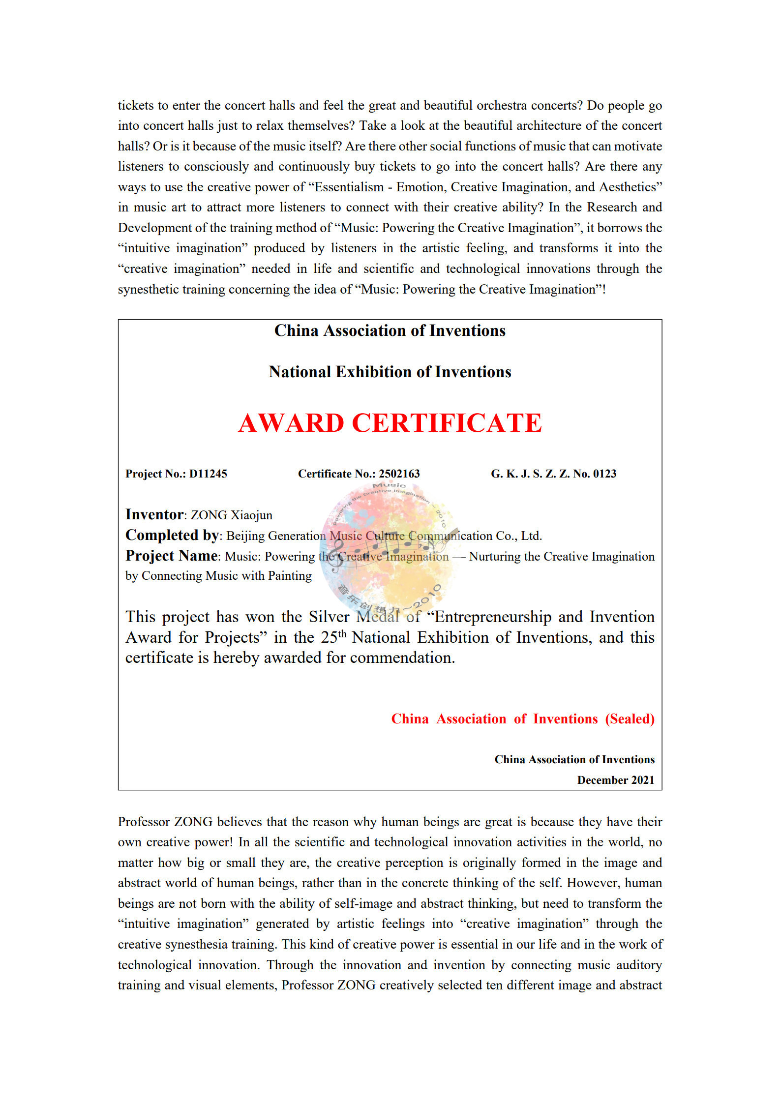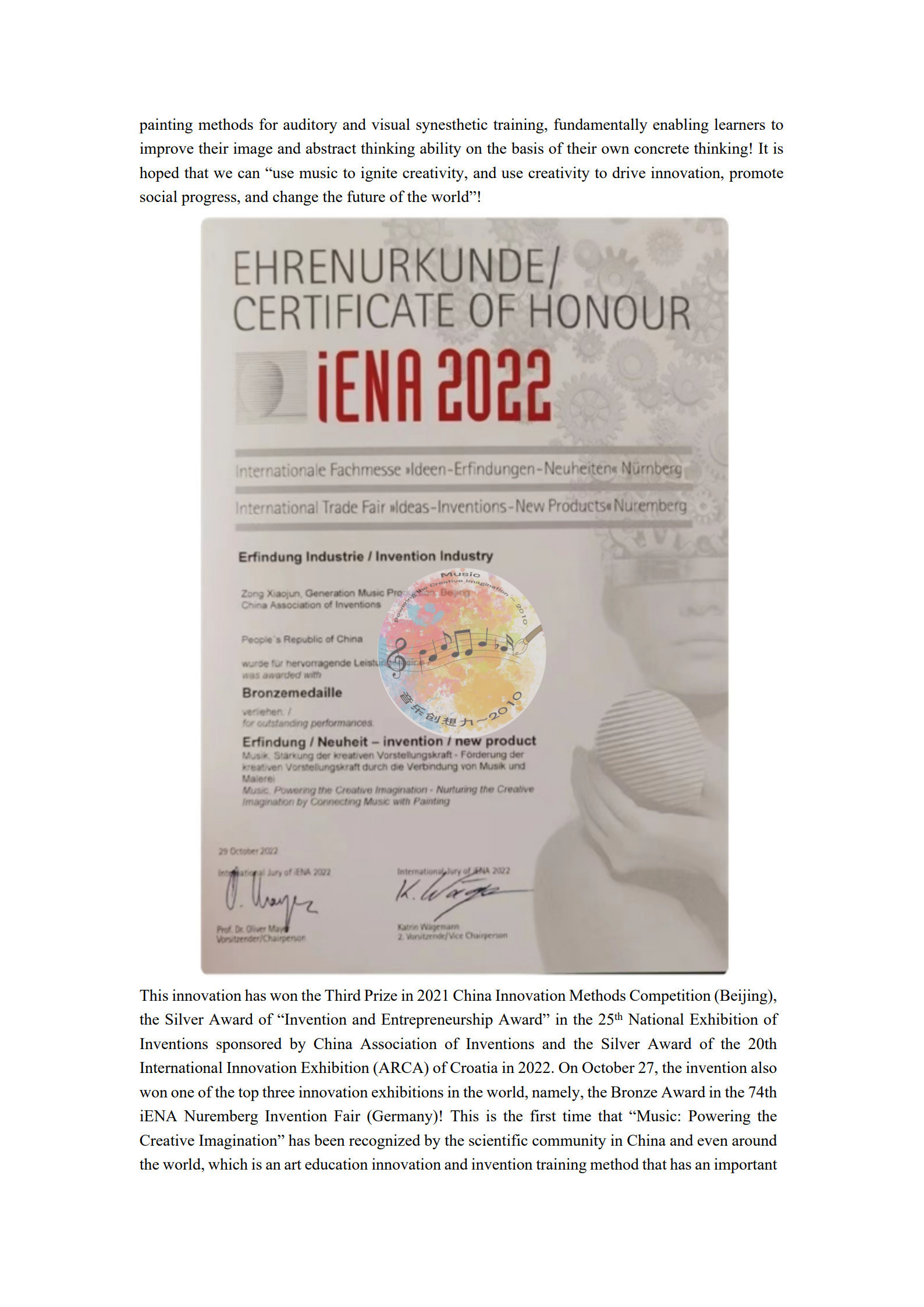 “音乐创想力”连续获得国内、国际创新发明大奖!