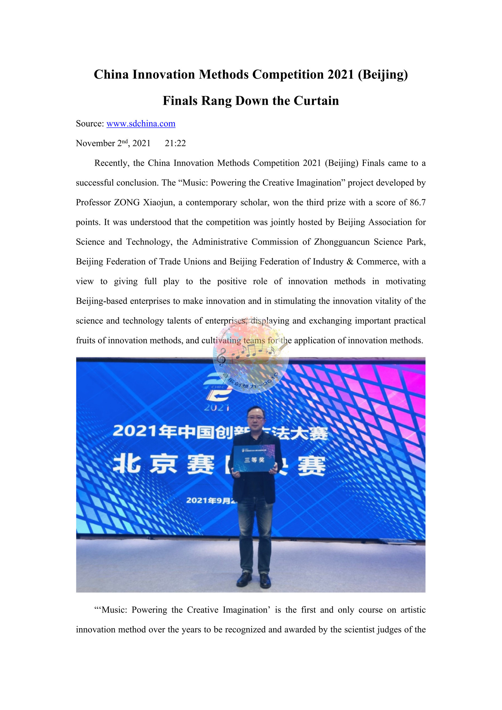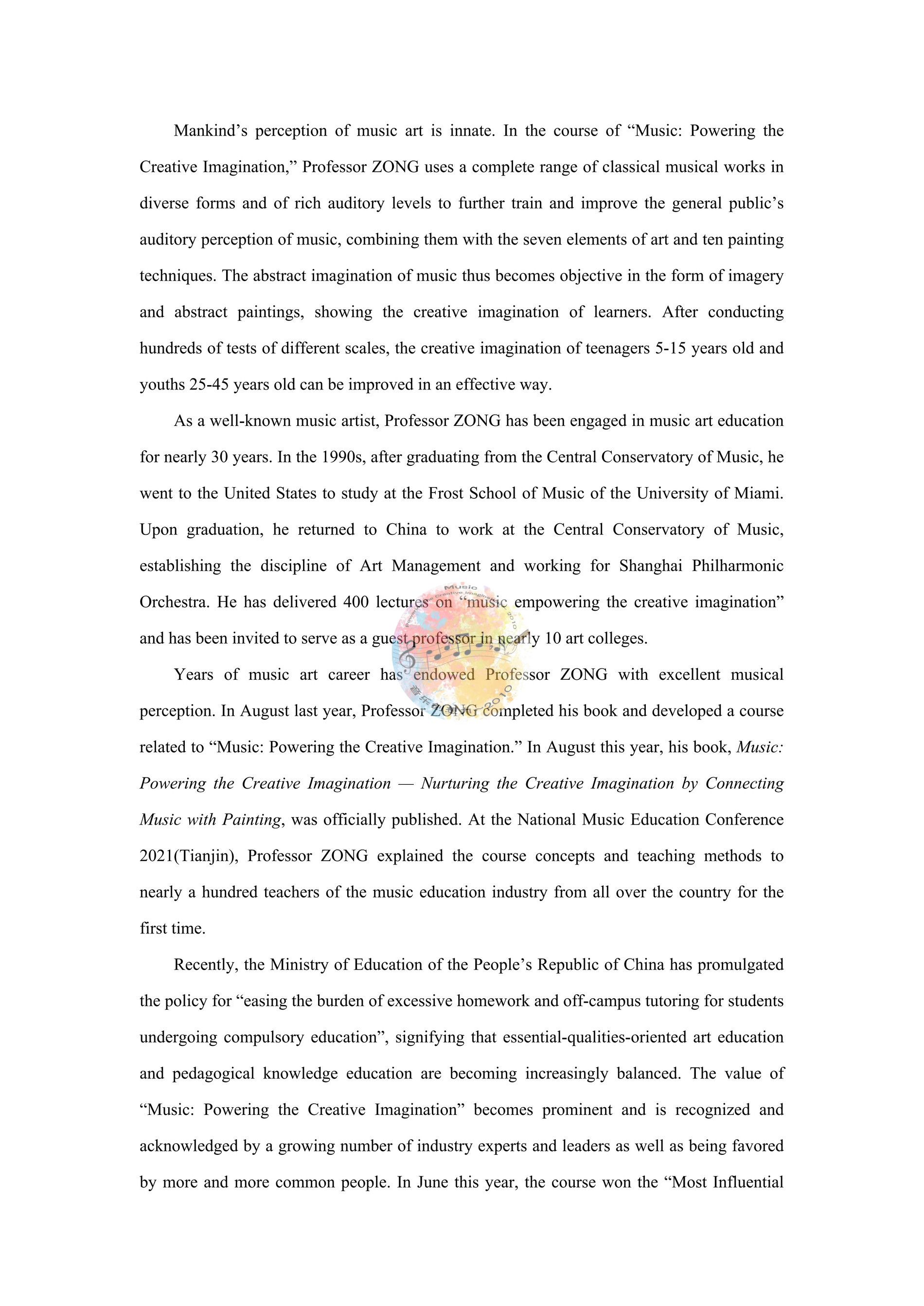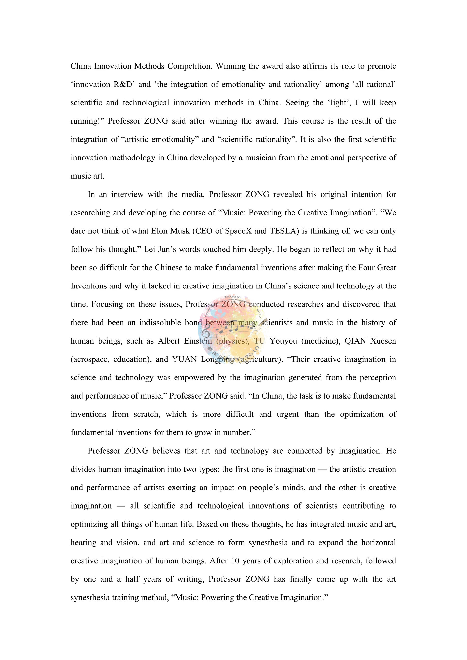 让《音乐创想力》成为推动社会前进、科技创新的新动力